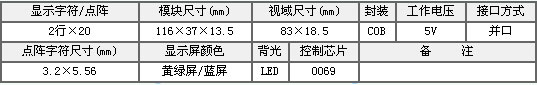 - 名稱:OCMC2X20 黃綠屏5V