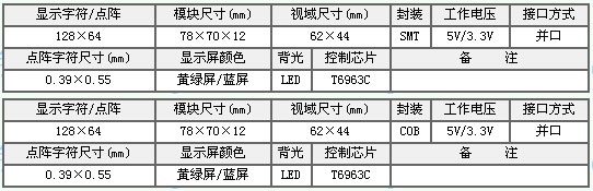 - 名稱:OCM12864-4 (SMT)黃綠屏5V