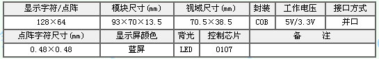 - 名稱:OCM12864-2 藍屏(白光)5V
