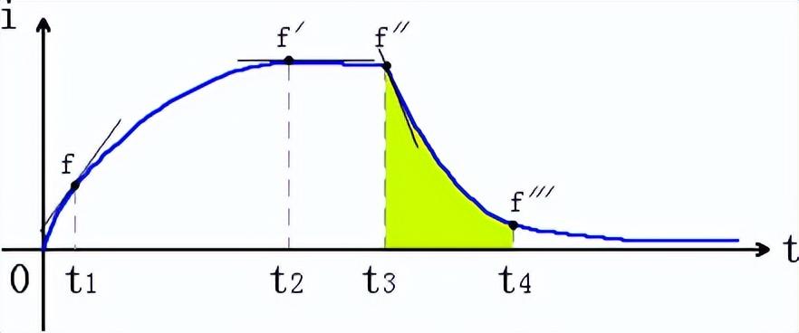 如圖1所示,當(dāng)開(kāi)關(guān)S閉合時(shí),a、b、d構(gòu)成閉合回路,電源E通過(guò)電感產(chǎn)生從小到大的電流i,此時(shí)t1(如圖2中t1→t2)電流頻率趨近高頻,根據(jù)楞次定律(增反減同),電感產(chǎn)生感應(yīng)電流方向與原電流i相反,感應(yīng)電流阻礙i變化,電感感應(yīng)電流方向?yàn)閎→a,也就是說(shuō)電源電流i在電感上轉(zhuǎn)為磁能存儲(chǔ)了下來(lái),直到t2時(shí)電流i最大,阻礙力也是最大,電感存儲(chǔ)的磁能也為最大。再接著t2過(guò)后電流傾向平緩,電流頻率趨近直流,電感阻礙減弱,多余的電流通過(guò)開(kāi)關(guān),組成閉合回路流向負(fù)極。