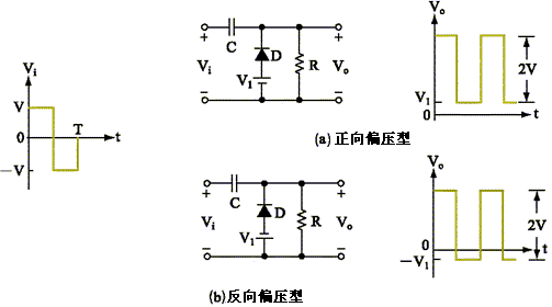 所謂鉗位,就是把輸入電壓變成峰值鉗制在某一預(yù)定的電平上的輸出電壓,而不改變信號(hào)。