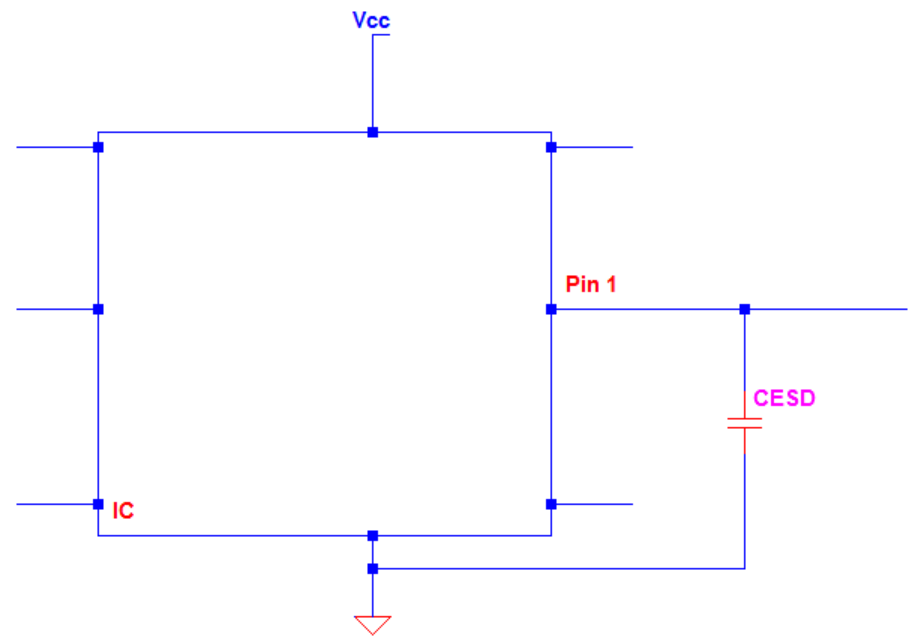 IC 引腳旁邊放置瓷片電容器也可以做到ESD保護(hù)。比如當(dāng)人體觸摸該引腳時(shí),人體上的電容與電路中的電容C ESD形成并聯(lián)。這個(gè)時(shí)候人體內(nèi)的8kV電位將被抑制,依據(jù)的基本原理就是電荷守恒,就是人體內(nèi)的電荷轉(zhuǎn)移到了電路的電容上,從而避免損壞器件。